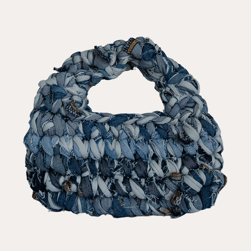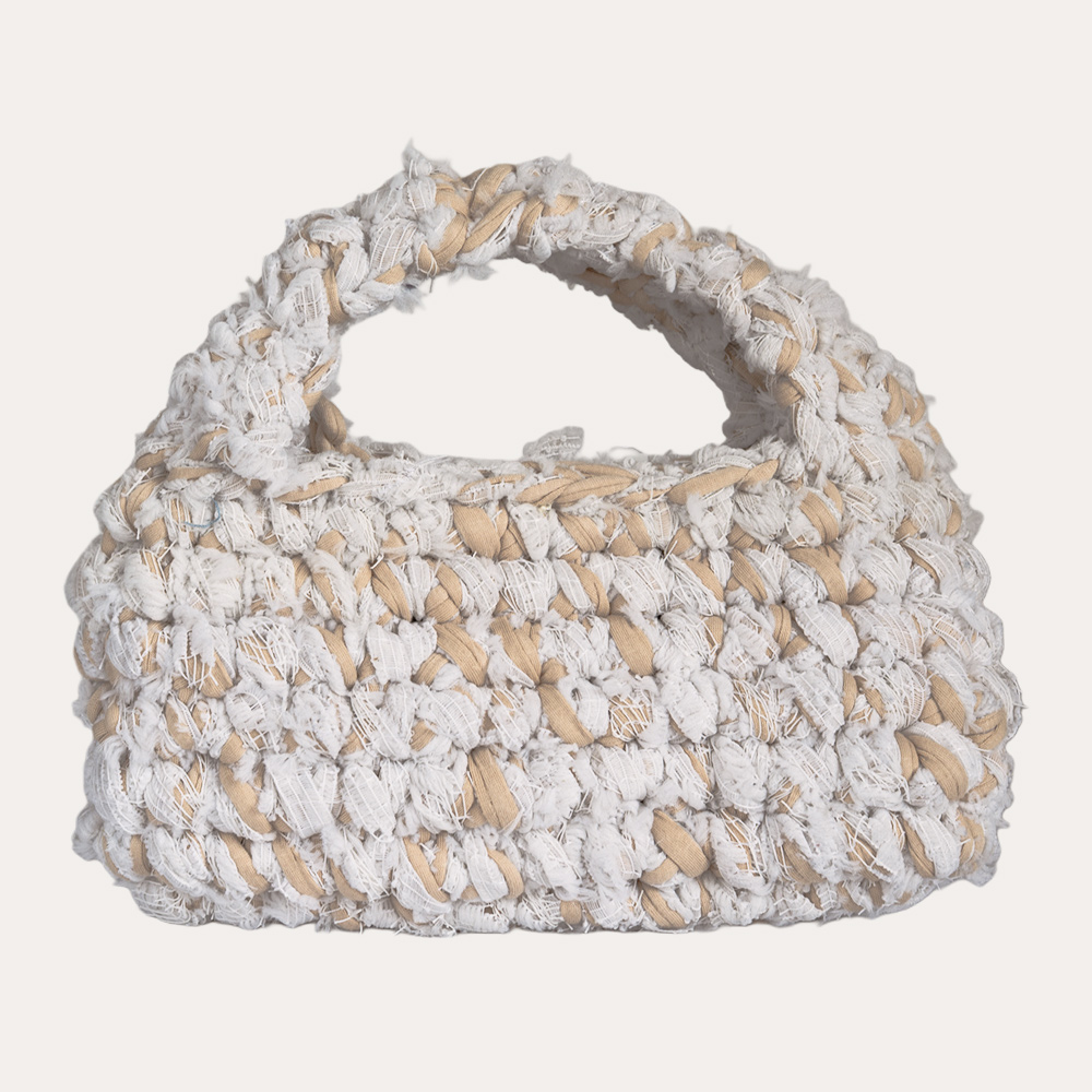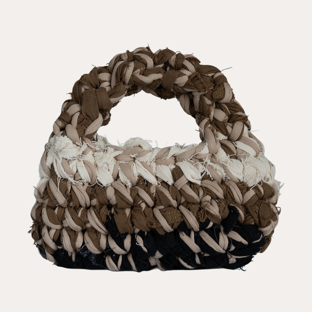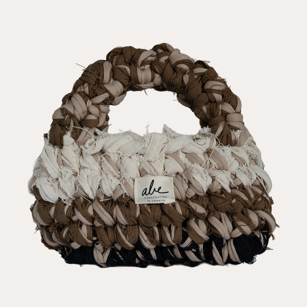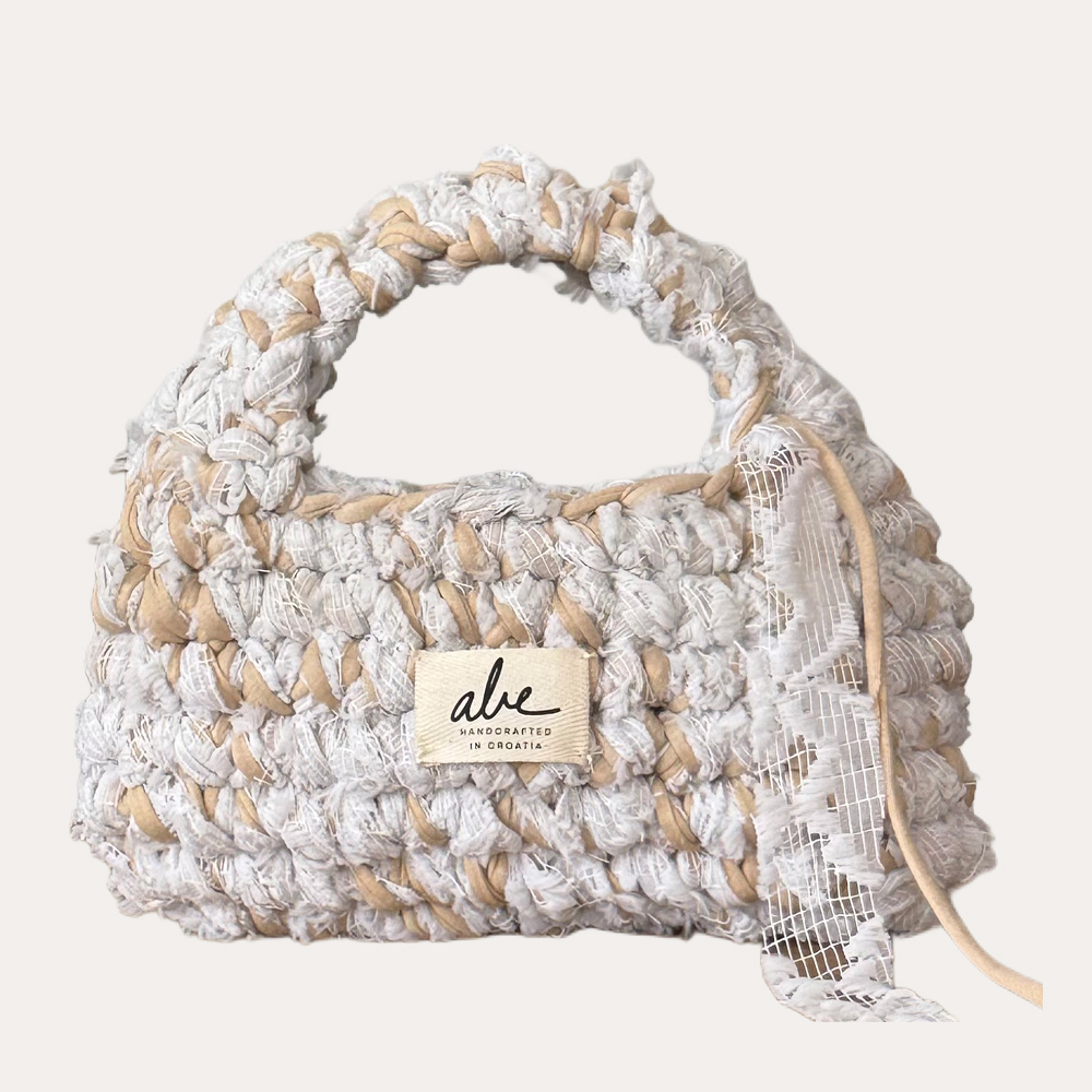 Ručno pletena torba izrađena od recikliranog tekstila – najčešće od trapera, pamučnih odjevnih predmeta, zavjesa, čipke i drugih materijala kojima dajemo novi život.